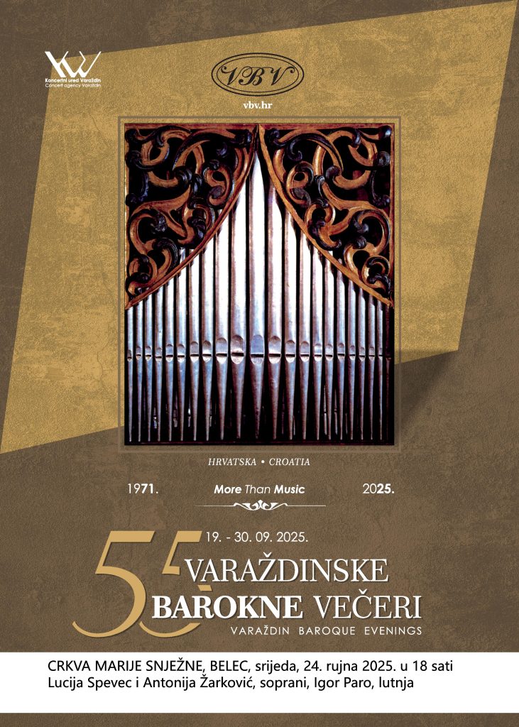 Doživite spoj prekrasnog interijera i akustike belečke crkve Marije Snježne u srijedu, 24. rujna u 18 sati na gostujućem koncertu Varaždinskih baroknih večeri. Nastupaju sopranistice Lucija Spevec i Antonija Žarković uz Igora Paru na lutnji.